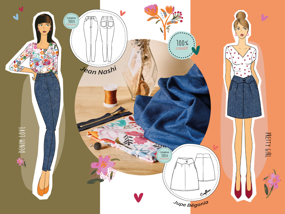 Ce mois-ci, découvrez en exclusivité nos deux nouveaux patrons couture mode femme : Le jean Nashi et la jupe Bégonia.