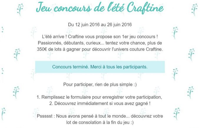 Jeu concours de l’été Craftine